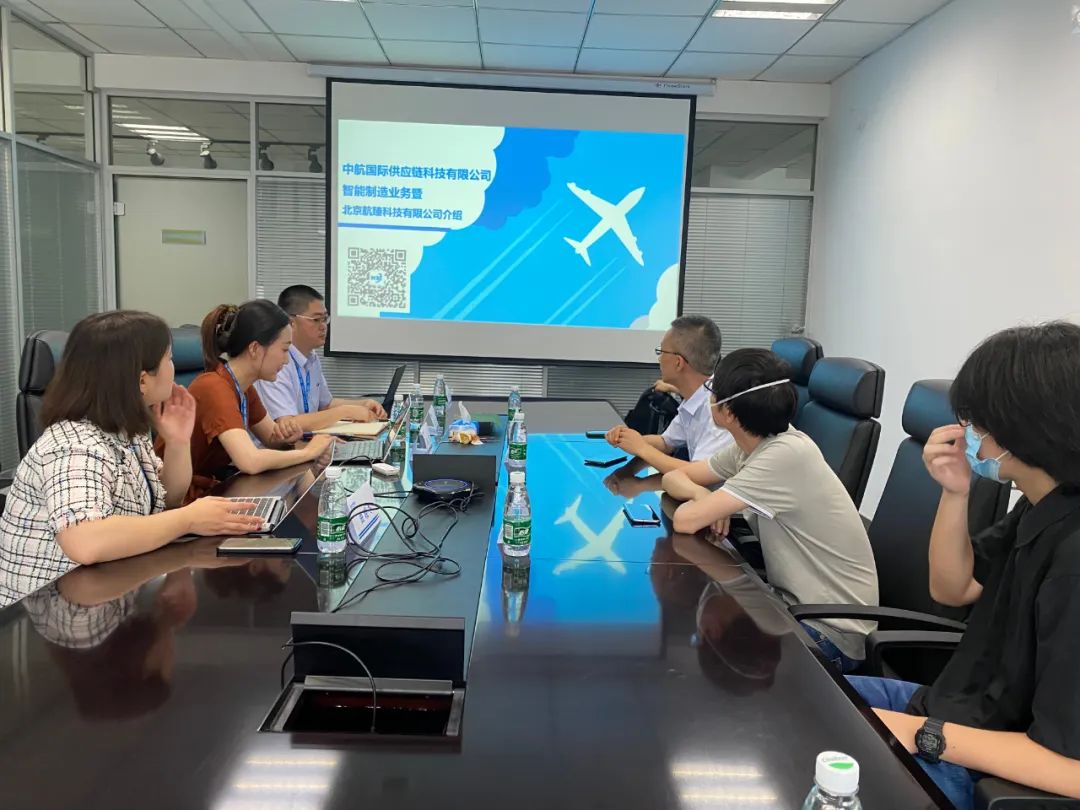 2022年7月27日,800cc全讯白菜网聽800全讯百菜官方网站应用经济系20级国际经济与贸易专业的同学们走进了中航国际顺义产业园,参观了中航国际供应链科技有限公司(以下简称中航国际)智能制造事业部及其航空工程能力提升中心。中航国际作为中央企业中国航空工业集团有限公司的成员单位,笃行“航空报国、航空强国”使命,旨在以专业化核心能力为支撑,依托航空工业并利用全球资源,为客户提供采购、运输、仓储配送、转包生产、设备采购、智能制造、智能装配等供应链集成服务,努力为航空用户创造更大价值,为中国航空工业发展提供更好支撑。本次认识实习暨实践育人活动采用“线下引领+线上协同”的形式,应用经济系教学主任马建峰副教授、应用经济系王凯副教授、俞峰老师以及学生代表陈一凡实地参加,国贸20级全体学生在线同步参加,其他专业的学生也在线上观摩,在线人数逾百。