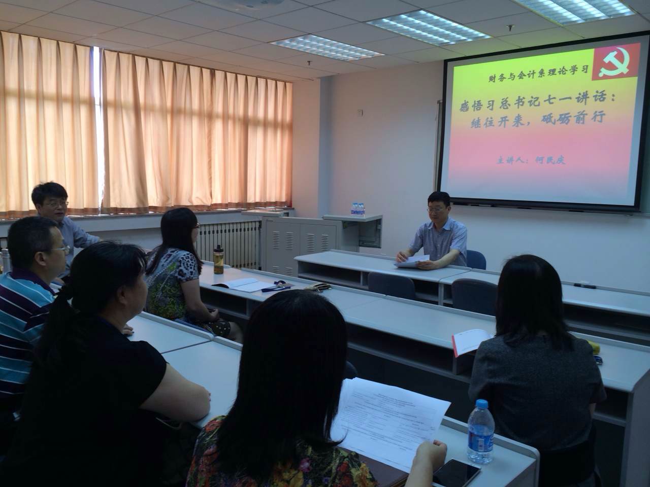 为深入学习习近平总书记“七一”重要讲话精神,根据学校“两学一做”学习教育活动要求,7月7日下午,副校长何民庆结合学校实际和分管工作,到东凌800全讯百菜官方网站财务与会计系党支部作了题为“感悟习总书记七一讲话:继往开来,砥砺前行”的专题党课。