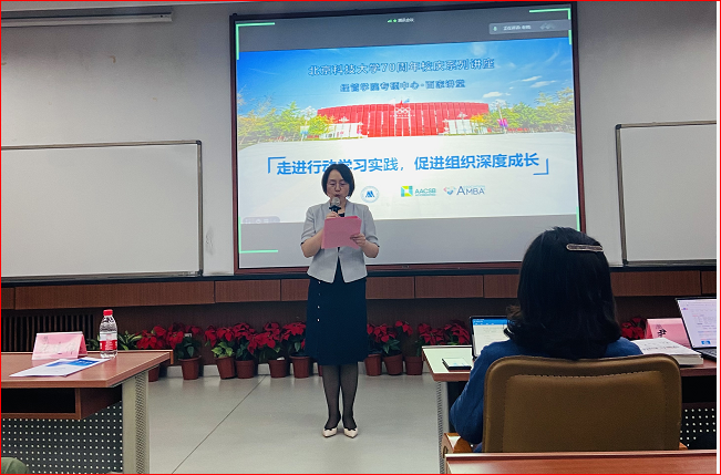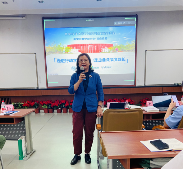 专硕中心主任李晓静副教授为讲座致辞,表达了举办本次分享课堂的初衷与期望。她在致辞中提到,行动学习有利于教育目标的实现,有利于学生和企业形成双赢共享局面,行动学习也将成为北科大经管学院新的教学改革项目,希望通过学习”行动学习”同学们能够得到提升并有所收获。