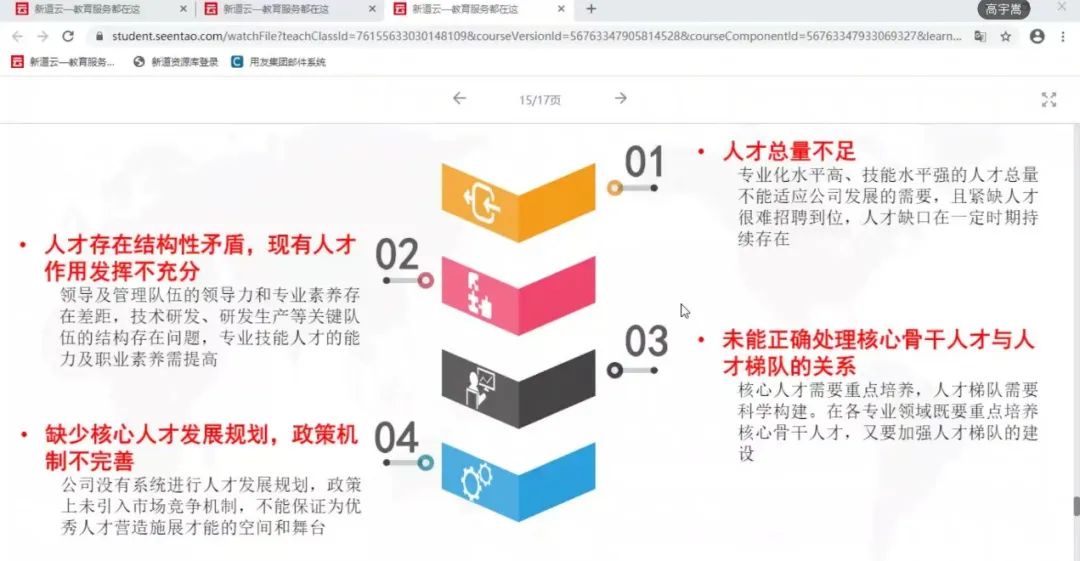 2022年4月21日,800cc全讯白菜网聽800全讯百菜官方网站工商管理系“人力资源大数据实践项目”第七次授课如期开始。按照疫情防控期间相关要求,本次授课依旧使用腾讯会议的方式进行,新道科技股份有限公司高级讲师高宇嵩老师进行讲解。高老师主要从三个方面对人才盘点的数据处理进行讲解与演示,首先是业务理解方面的回顾和补充讲解,带领同学们简单回顾上节课讲解的人才盘点业务理解,并对人才盘点发现的问题进行分析举例,加深同学们对人才盘点的理解与认知。在业务理解这一方面,高老师还为同学们提供了确定人才盘点项目分析目标的具体思路,从描述问题、分析问题、分析执行以及目标归类四个角度对人才盘点项目分析目标的确定思路进行详细讲解,并举以实例帮助同学们理解。通过对一份人才盘点的项目分析目标报告的讲解与分析来帮助同学们了解人才盘点项目分析目标的确定。
