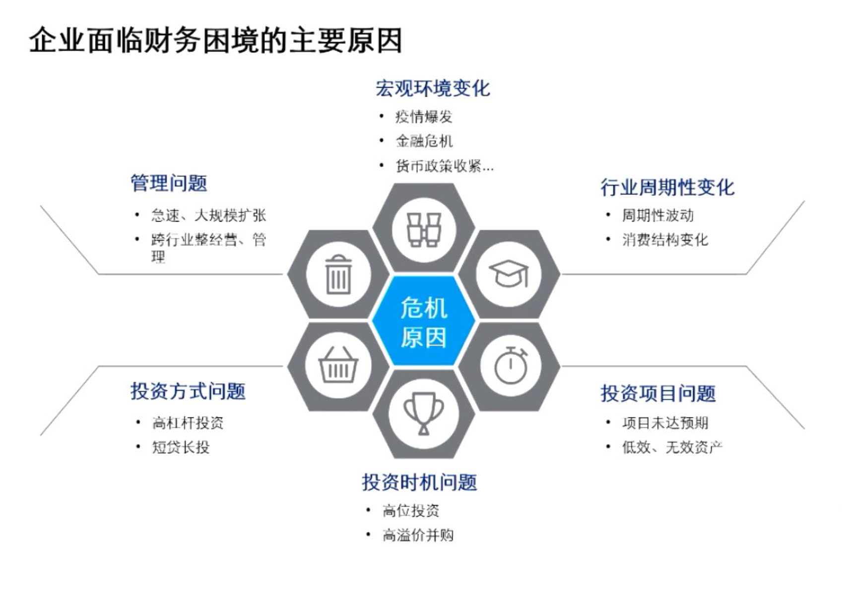 答:企业发生债务危机以后,大方向包含现状分析、看现状、看未来、盈利预测等方面,这是一个程序性的事情。