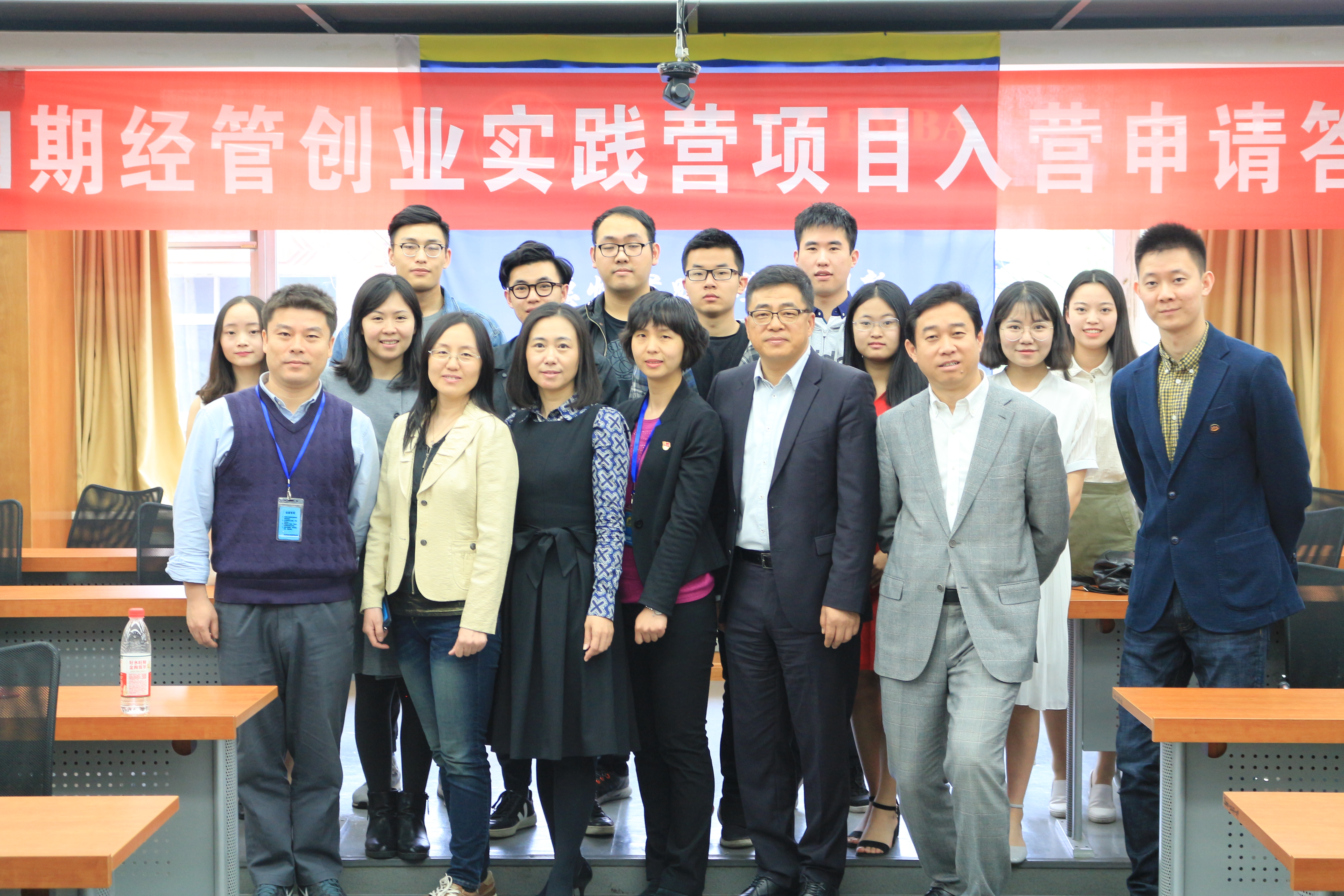 出席本次项目申请答辩会的嘉宾有:学院管研86级校友、中房集团城市房地产投资有限公司总经理李京北,学院EMBA2015级校友、北京欢乐星橙文化传媒有限公司CEO鲍华,英诺天使基金、英诺创新空间投资总监贾海宁,学院副院长范小华,学院财务与会计系副教授李晓静,学院经济贸易系副教授邓立治。答辩会由学院党委副书记温雅主持。