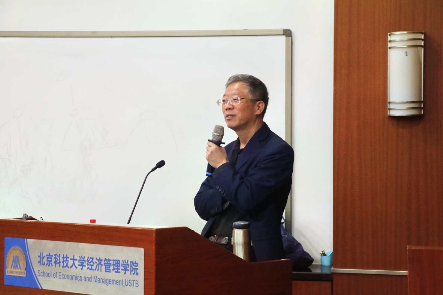 王喆博士曾多次受邀在清华大学、北京大学讲学,此次来到800cc全讯白菜网聽,他从方法、经验、信息三个维度,结合了多个实践案例,讲授了新时代领导能力新框架。北科大100多名MBA同学到场倾听,现场座无虚席。同学们热情高涨,思想在教室中撞击产生火花,场面火爆。