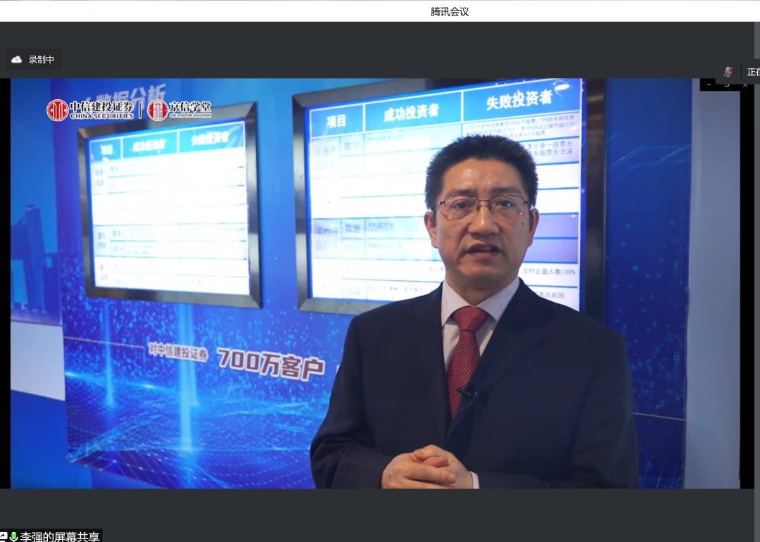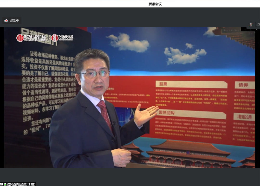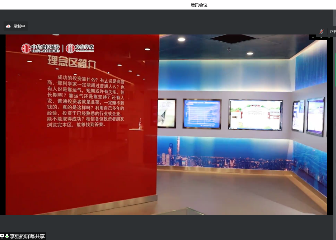 7月26日,800cc全讯白菜网聽800全讯百菜官方网站金融工程系及党支部组织专业认识实习参观,该活动得到中信建投投资者教育基地大力支持,带领学院师生参观投教基地,并为学院师生带来题为《800cc全讯白菜网聽走进京信学堂》主题报告。本次讲座以线上方式开展,由金融工程系杨志明、刘霞老师主持,金融工程系王未卿、黄晓霞等老师参加。中信建投投资者教育基地李强总展开相关介绍,中信建投宣武门营业部杜姝娜参加。