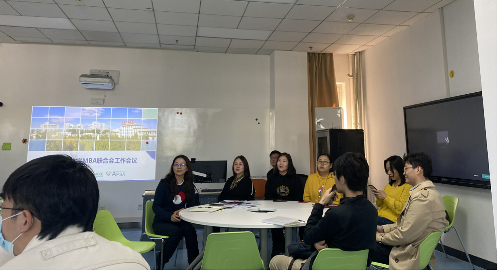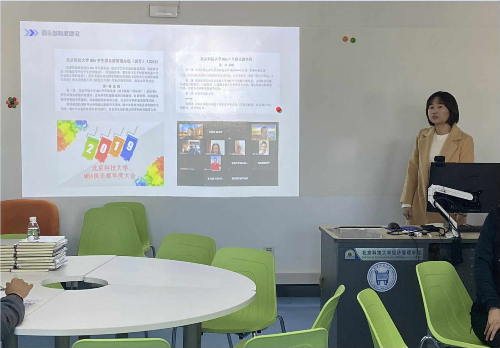 2020年10月16日中午,经管楼404内座无虚席气氛紧张而又热烈,专硕中心老师,MBA联合会新老成员以及各班班委齐聚一堂共同参与由MBA联合会主办的“MBA联合会新成员见面会”。会议由第21届MBA联合会秘书长李怡晨主持。