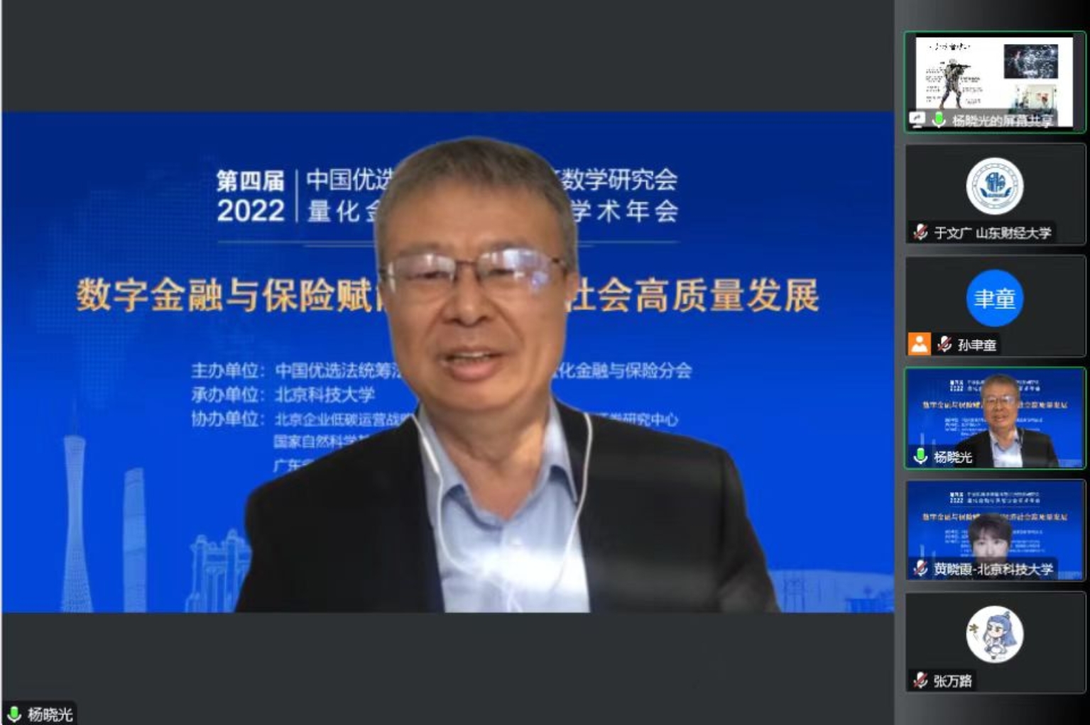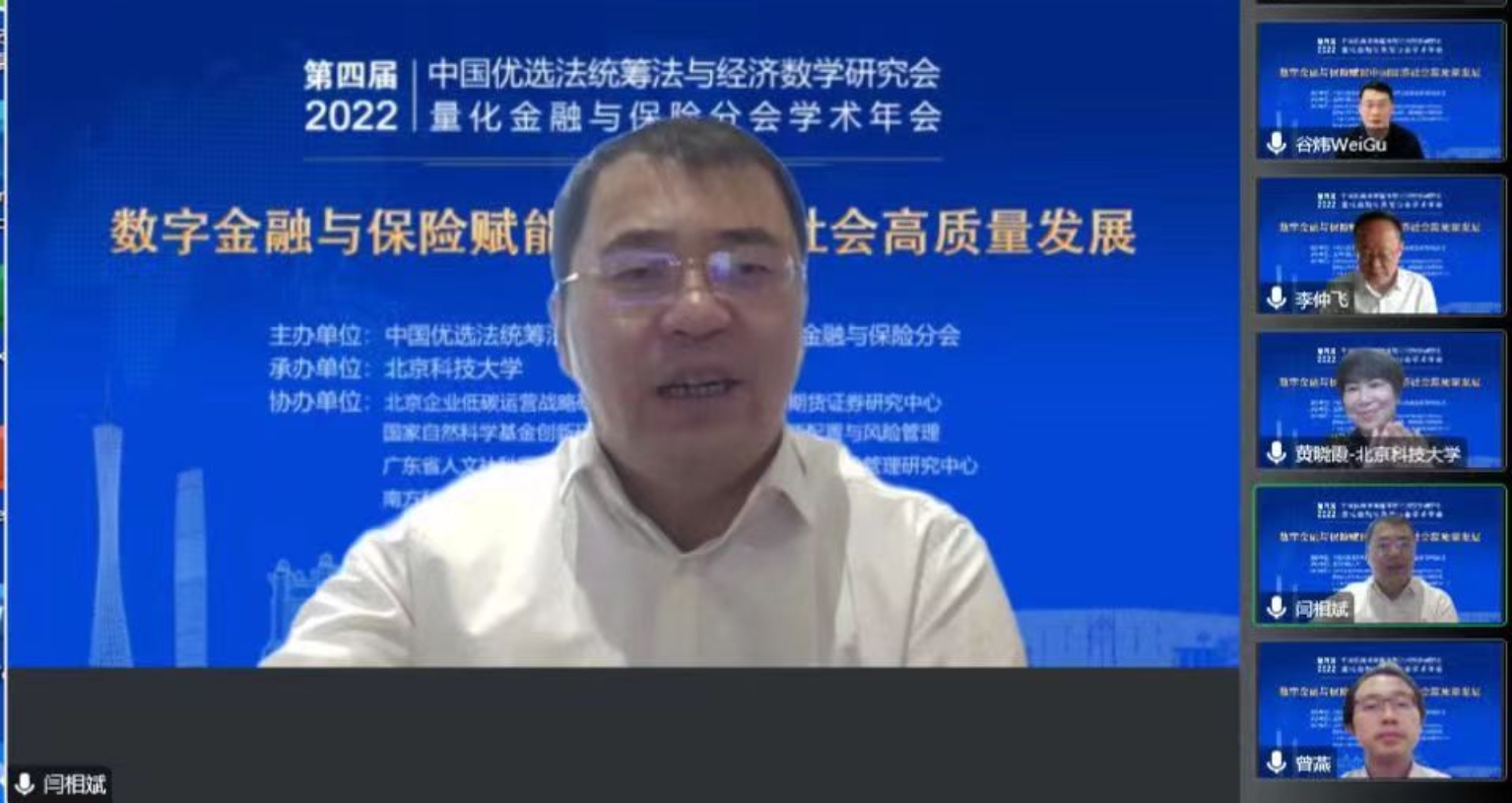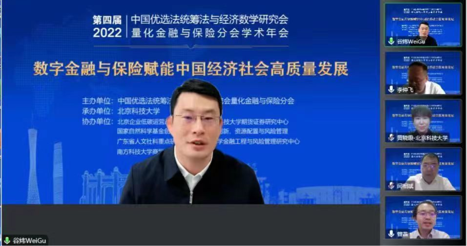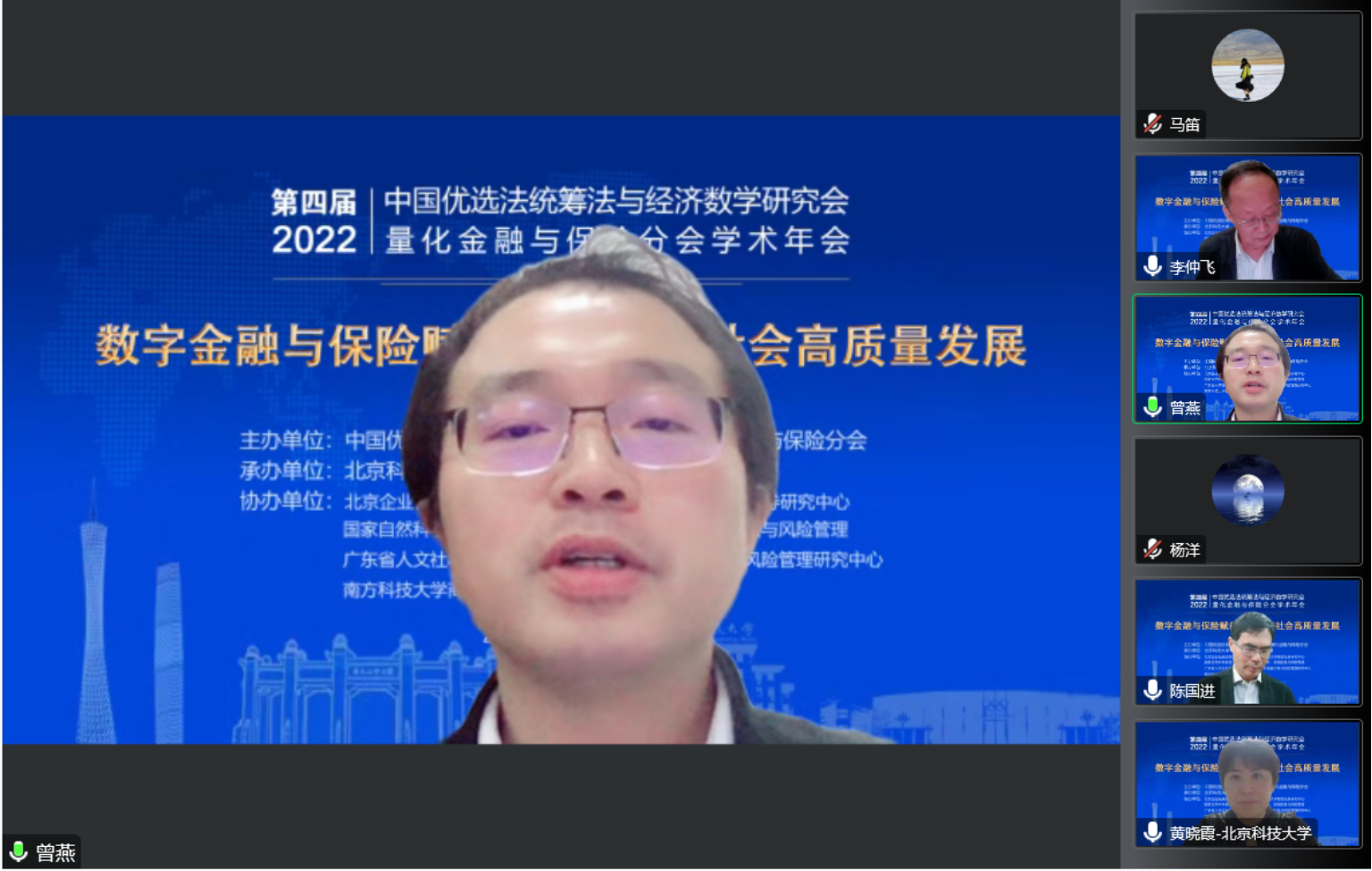 2022年12月3日至4日,第四届(2022)双法研究会量化金融与保险分会学术年会在线胜利召开。本届年会由中国优选法统筹法与经济数学研究会(简称中国“双法”研究会)量化金融与保险分会主办,800cc全讯白菜网聽承办,北京企业低碳运营战略研究基地、800cc全讯白菜网聽期货证券研究中心、国家自然科学基金创新研究群体:金融创新、资源配置与风险管理、广东省人文社科重点研究基地:中山大学金融工程与风险管理研究中心,南方科技大学商学院金融系协办。