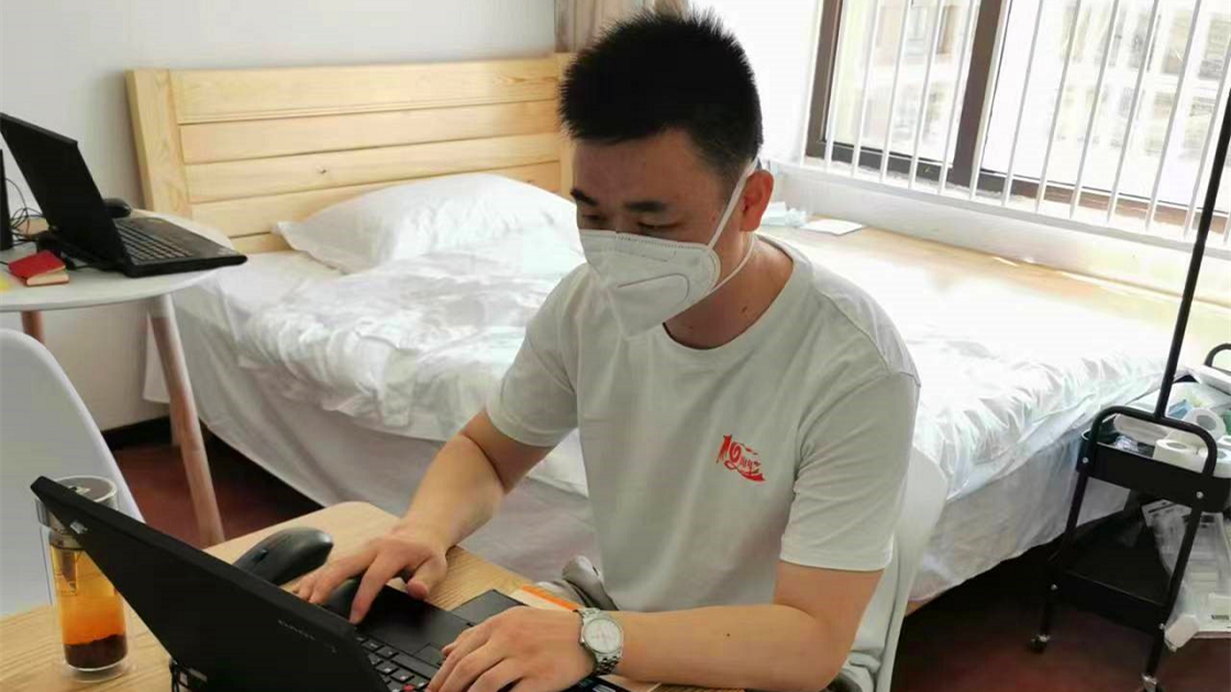 曾维涛同学在隔离点宾馆做流程梳理工作