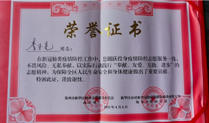 就职于河北众邦兴业电梯有限公司。2022年3月8日沧州突发新冠疫情,沧州市全域实施加强疫情风险管控,严格封控区域管理,实行“区域封闭、足不出户、服务上门”。响应市委市政府号召,进一步动员社会力量依法有序参与疫情防控工作,我积极参与根据市政府统筹安排,就近就变协助社区开展疫情防控工作、生活物资配送等志愿服务工作 。开展新华区大化三区1000户居民核酸医务人员的接送工作、核酸检测的宣传、组织以及秩序维护,作为年轻的志愿者与核酸检测人员一同爬楼入户,为行动不便的老人孩子开展核酸检测。后期负责所在片区生活物资的采购、分拣、配送等。疫情期间的志愿工作得到了区政府、街道办、社区的充分肯定,并予以表彰。