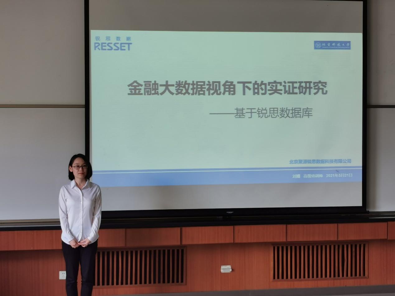 刘姗老师以《金融大数据视角下的实证研究——基于锐思数据库》为题,首先介绍了锐思数据库的数据内容和主要功能,并从实证研究数据库与资讯类数据库的区别入手,详细介绍了锐思数据库的特色及优势。然后,介绍了金融数据库在科研中的应用,并以论文《债务期限结构影响因素研究》为例,介绍锐思数据库在实证研究中所能提供的数据支持。接着,刘老师讲解了锐思财经文本智能分析平台、中国企业大数据平台的科研应用与使用方法。最后,刘老师与现场及线上的师生们进行了充分的交流和答疑。