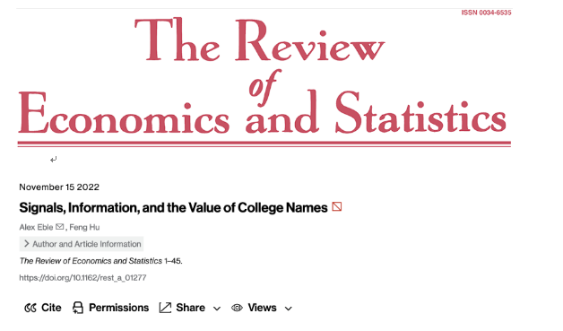 我院胡枫教授在经济学国际顶级期刊Review of Economics and Statistics发表最新研究成果