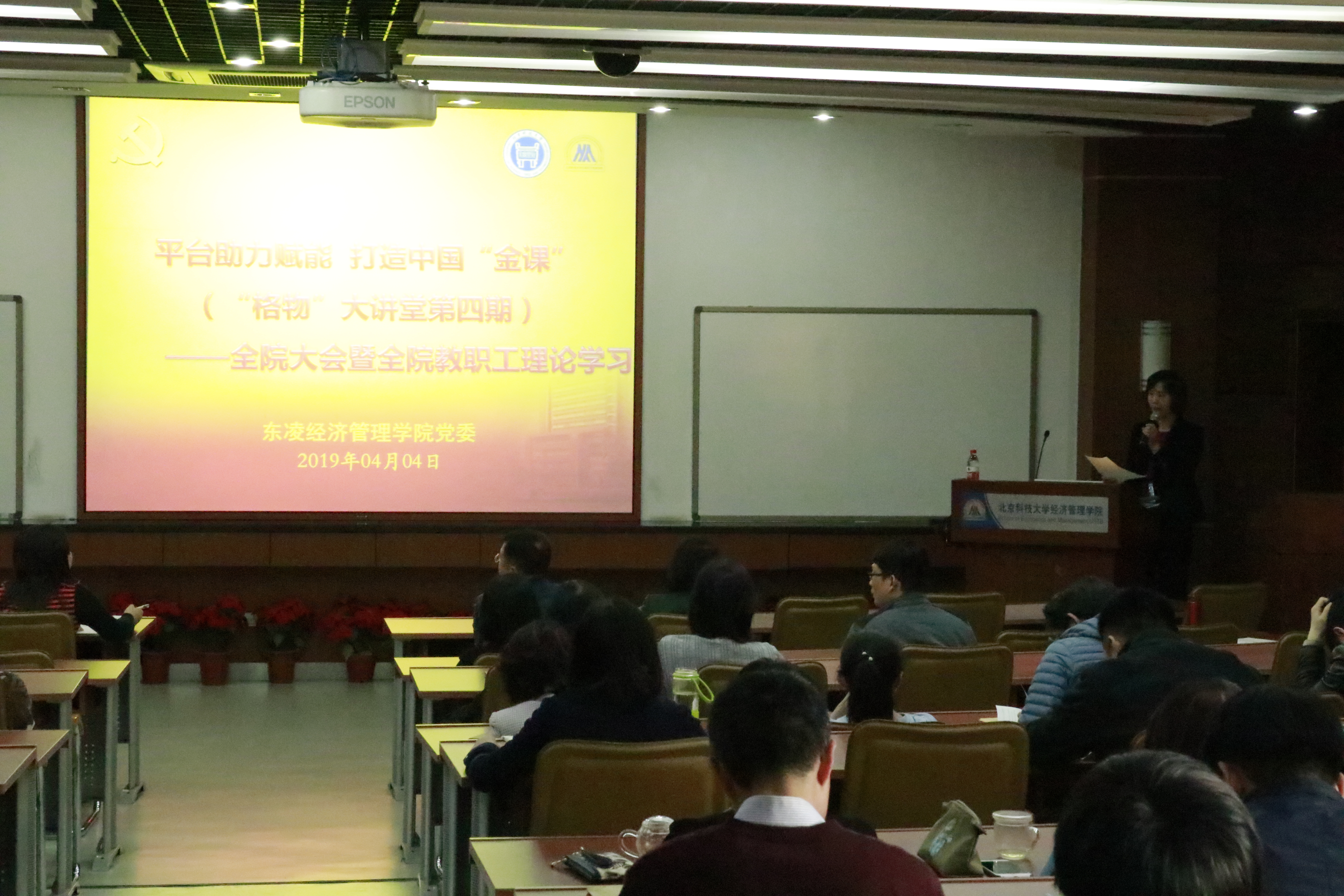 2019年4月4日星期四下午3点半,东凌800全讯百菜官方网站全院大会暨全体教职工专题理论学习会在经管楼313召开。